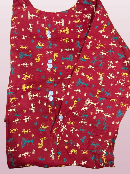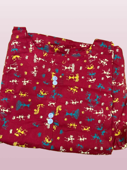 Embrace timeless elegance with our Cotton Warli Print Kurti, designed to offer both style and comfort. Crafted from 100% pure cotton, this kurti features a vibrant print that adds a touch of nature-inspired beauty to your wardrobe.