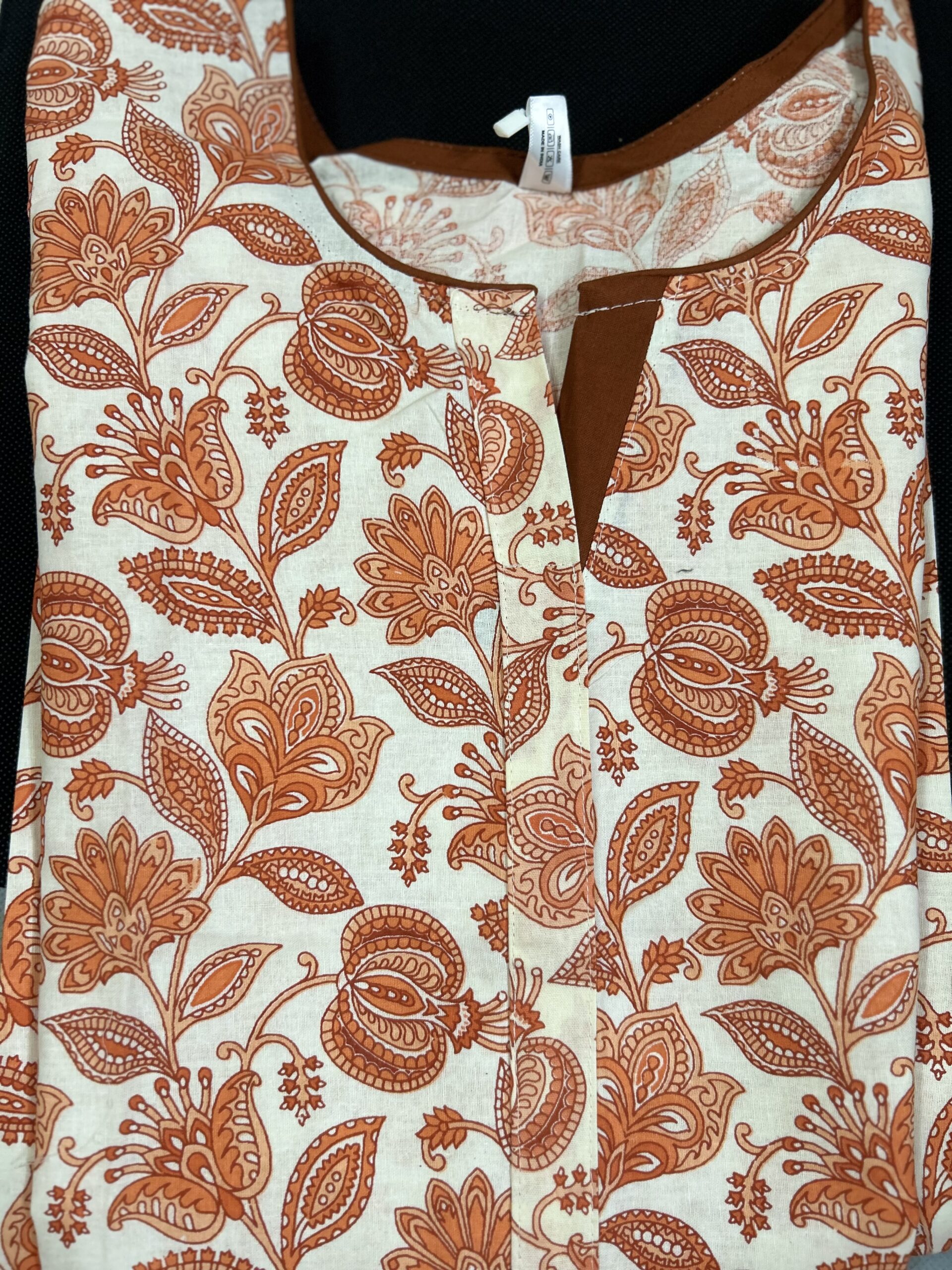 Embrace timeless elegance with our Cotton Floral Print Kurti, designed to offer both style and comfort. Crafted from 100% pure cotton, this kurti features a vibrant floral print that adds a touch of nature-inspired beauty to your wardrobe.